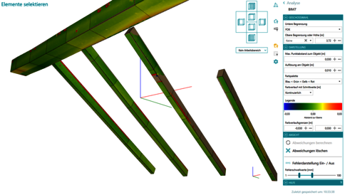 - BIM-Export (IFC): Beim Export-Schritt des BIM-Workflows werden die berechneten Genauigkeiten für Wände, Rohre, etc. gruppiert ausgegeben. Die Aussage über die Qualität der abgeleiteten Element wird dadurch stark verbessert.