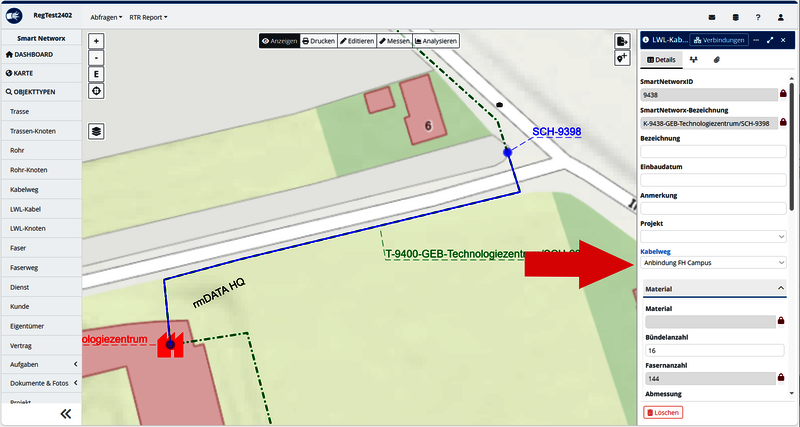 Mit rmDATA Smart Networx verwalten Sie alle Informationen (z.B. Trassen, Rohre, Kabel, Netzknoten, Faserverbindungen, Kunden) rund um Ihr Netz in einem zentralen Datenbestand.