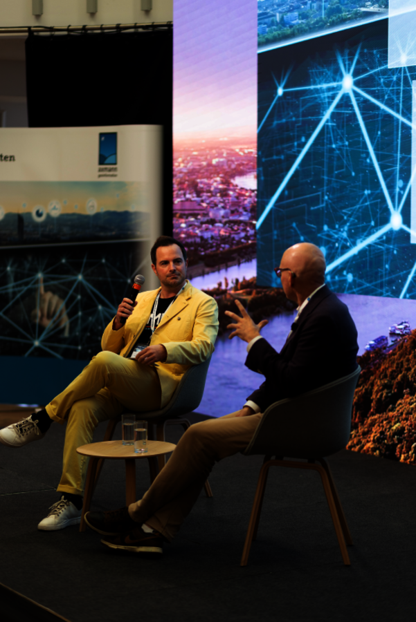 Christoph Kircher, Geschäftsführer von axmann geoinformation im Gespräch mit Don Murray, Gründer und CEO von Safe Software. Fotos © studionext